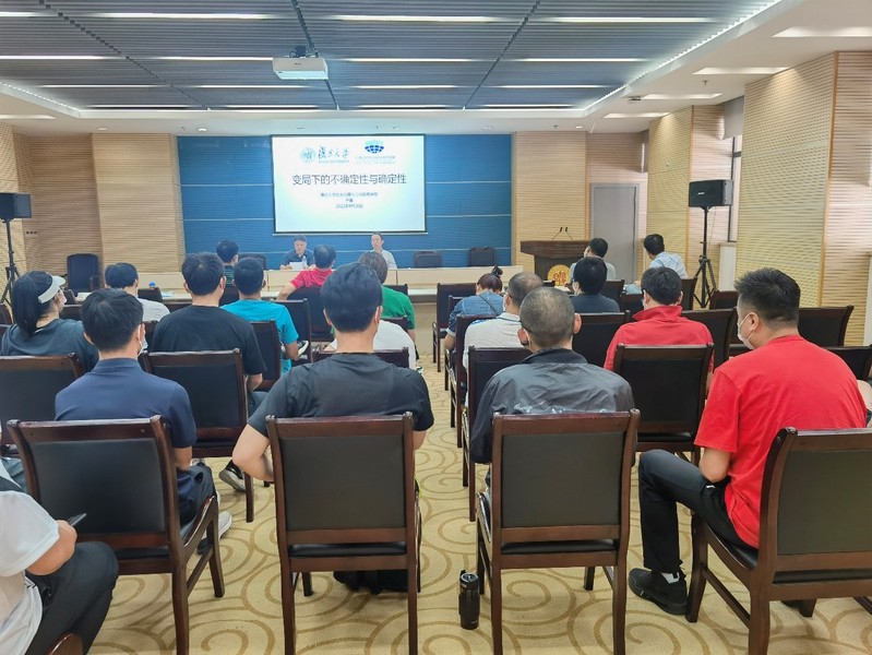 习近平总书记“7·26”重要讲话,是马克思主义中国化的最新成果,是坚持和发展中国特色社会主义的政治宣言和行动纲领。当今世界正经历百年未有之大变局,尹教授在讲座中着重分析了世界之变、时代之变、历史之变中的具体变化以及由此带来的“不确定性”的具体表现,介绍了“把我们自己的事情做好”应对“不确定性”的总体思路,解析了在哪些方面可以利用确定性来取得发展。尹教授指出,正确看待世界变局中的变与不变、确定性与不确定性问题,对于我们更好的认识决定世界百年未有之大变局走向的关键因素,牢牢把握战略主动,在变局中开新局,具有重要的战略意义。