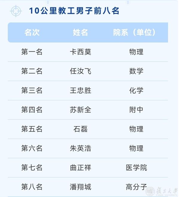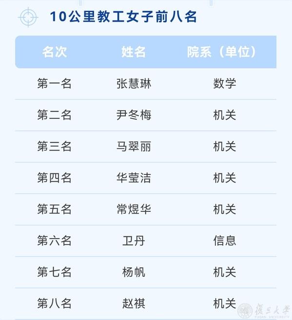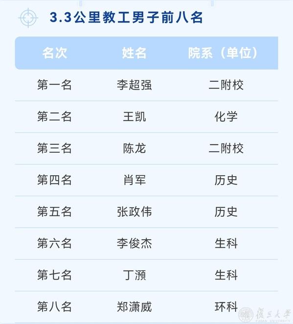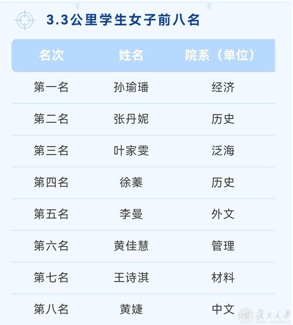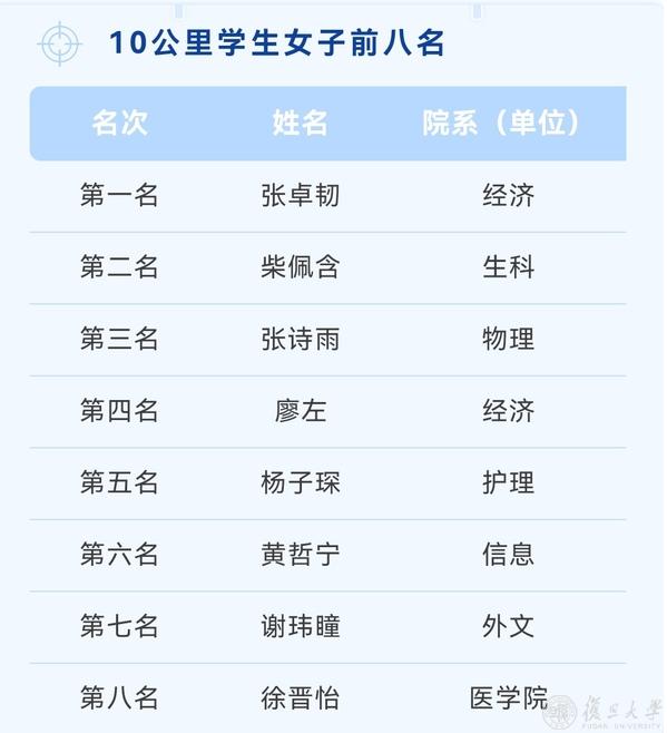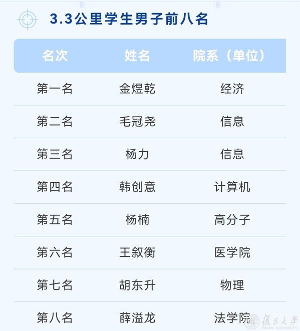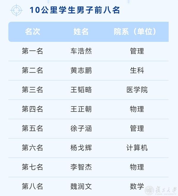 复旦第七届乐跑赛名次一览