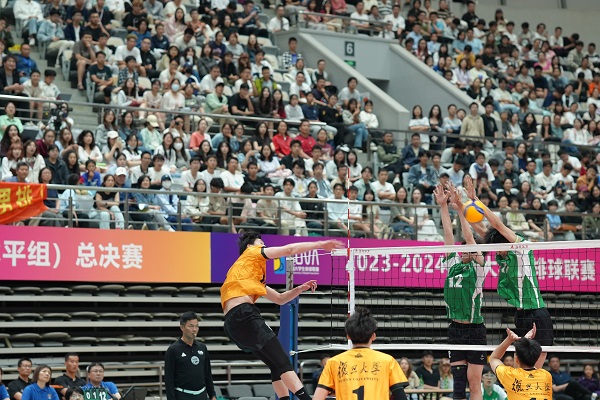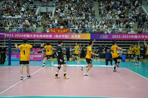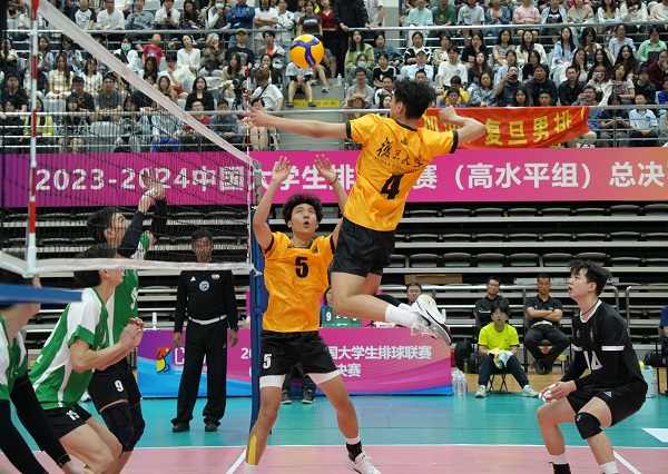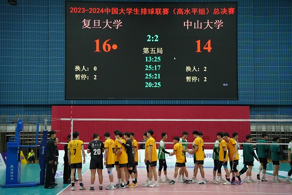 6月2日晚,复旦大学正大体育馆内人声鼎沸,三千多位校内外观众见证了2023-2024中国大学生排球联赛(高水平组)总决赛(男子组)第一回合的激烈角逐。复旦大学男子排球队坐镇主场,与来访的中山大学男排展开了一场扣人心弦的较量。经过长达两小时的五局激战,复旦男排凭借队员们的顽强拼搏和教练团队的精准指挥,最终以3比2的比分战胜对手,取得了总决赛的首场胜利。