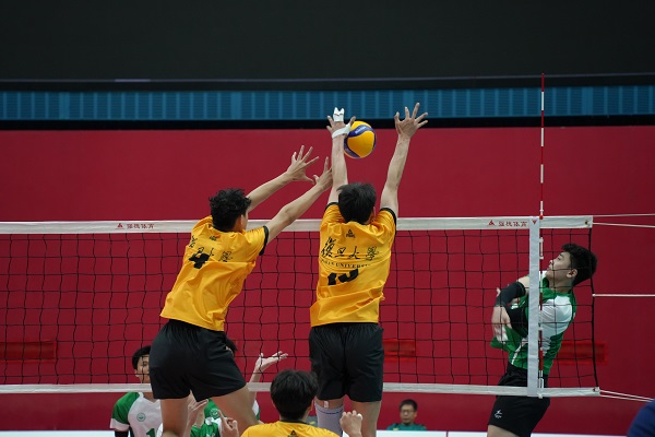 延续着第二局必胜的气势,第三局比赛复旦男排始终保持着领先优势。在比赛开局4:4平僵持阶段,复旦男排凭借着在多年训练中积累的十足默契,在一传半到位的情况下,二传为副攻晃出一记空门,队员们抓住机会实现了比分的反超,将比分带到5:4。紧接着,复旦男排在获胜的势头下,逐步实现多点开花,通过拦网以及前后排进攻、打吊结合的方式频频得分,9:5、13:8、19:16…23:19、25:21,尽管中山男排在比赛中展现出了顽强的斗志和实力,但复旦男排凭借稳定的发挥和团队配合,紧紧抓住机会再下一城,将大比分反超至2:1。