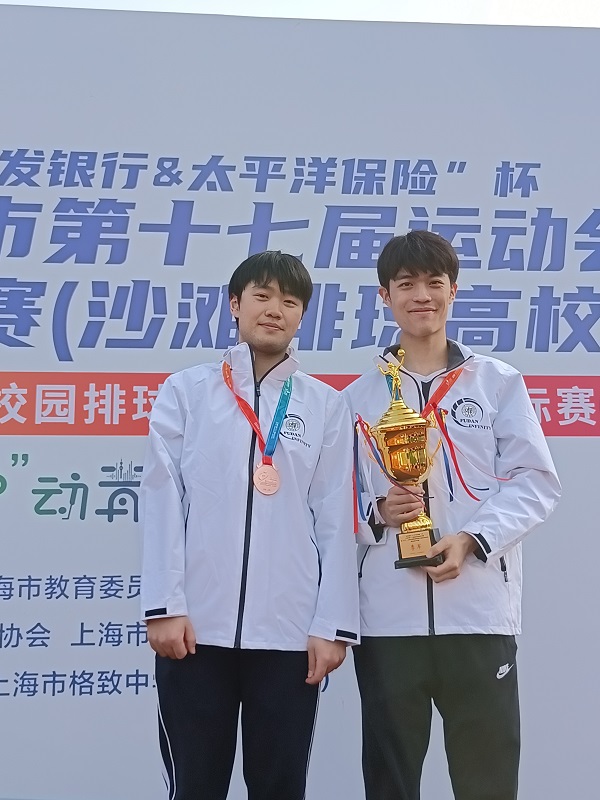 1119日,在沙滩排球乙组的比赛中,我校男子排球高水平运动员葛嘉伟与钱若飞以三胜一负的成绩荣获铜牌。我校男排在备战市运会过程中得到了乐鱼官网 等部门领导和老师们的大力支持,成绩的取得离不开学校的全力保障、领导的鼎力支持、教练员的悉心指导、队员们的努力拼搏。感谢所有支持他们的人。祝愿他们在未来的比赛中都能够取得优异的成绩!