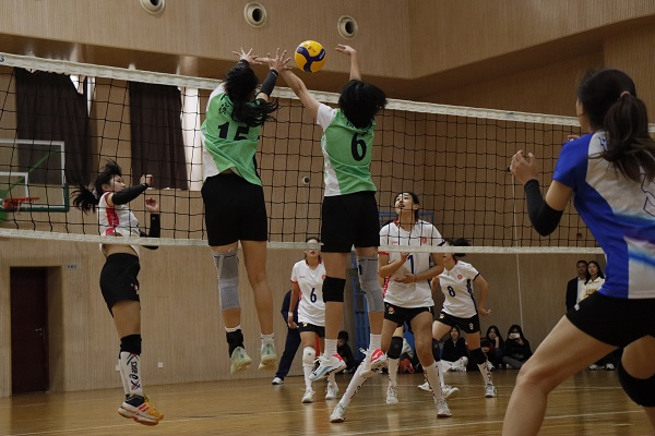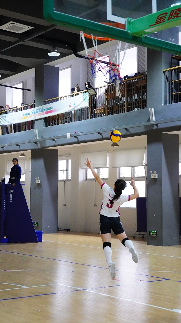 1125日,市运会排球比赛(高校乙组)在复兴中学开赛,复旦大学女子排球队以四场全胜的成绩夺冠军。
