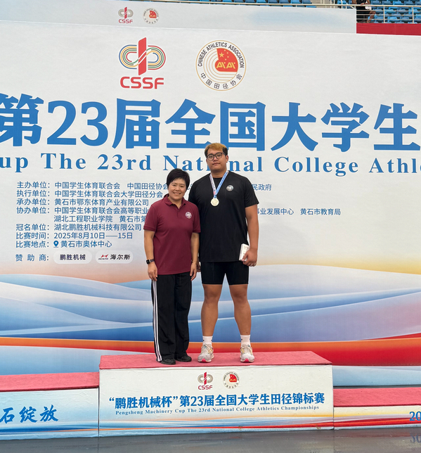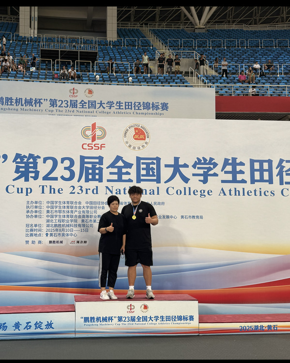 法学院常翱在2025年全国田径接力锦标赛后连夜辗转到黄石,预赛以10.42秒的小组第一轻松晋级。在隔天早上雨中作战,最终以强大的后程能力取得男子丁组100米第三名的好成绩。