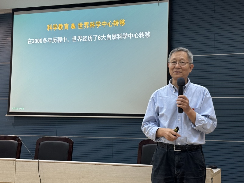 卢宝荣教授以“科教兴国:实现创新驱动高质量发展 ——科学、人文与艺术激发创新思维”为题,重点解读了党的二十届三中全会精神,从科教兴国,创新驱动,创新思维出发,深入分析了世界科技发展历史的进程、科学教育与世界科学中心转移的脉络,详细阐明了科技创新与国家兴衰的关系,强调科教兴国的重要性。他指出,在立德树人的过程中,教师必须注重对学生真善美的培养,通过艺术与科学的碰撞来感悟创新,在对美的追求热爱中激发情怀,从创新思维中提出有意义的科学问题,从而造就对国家发展有用的高素质创新人才。